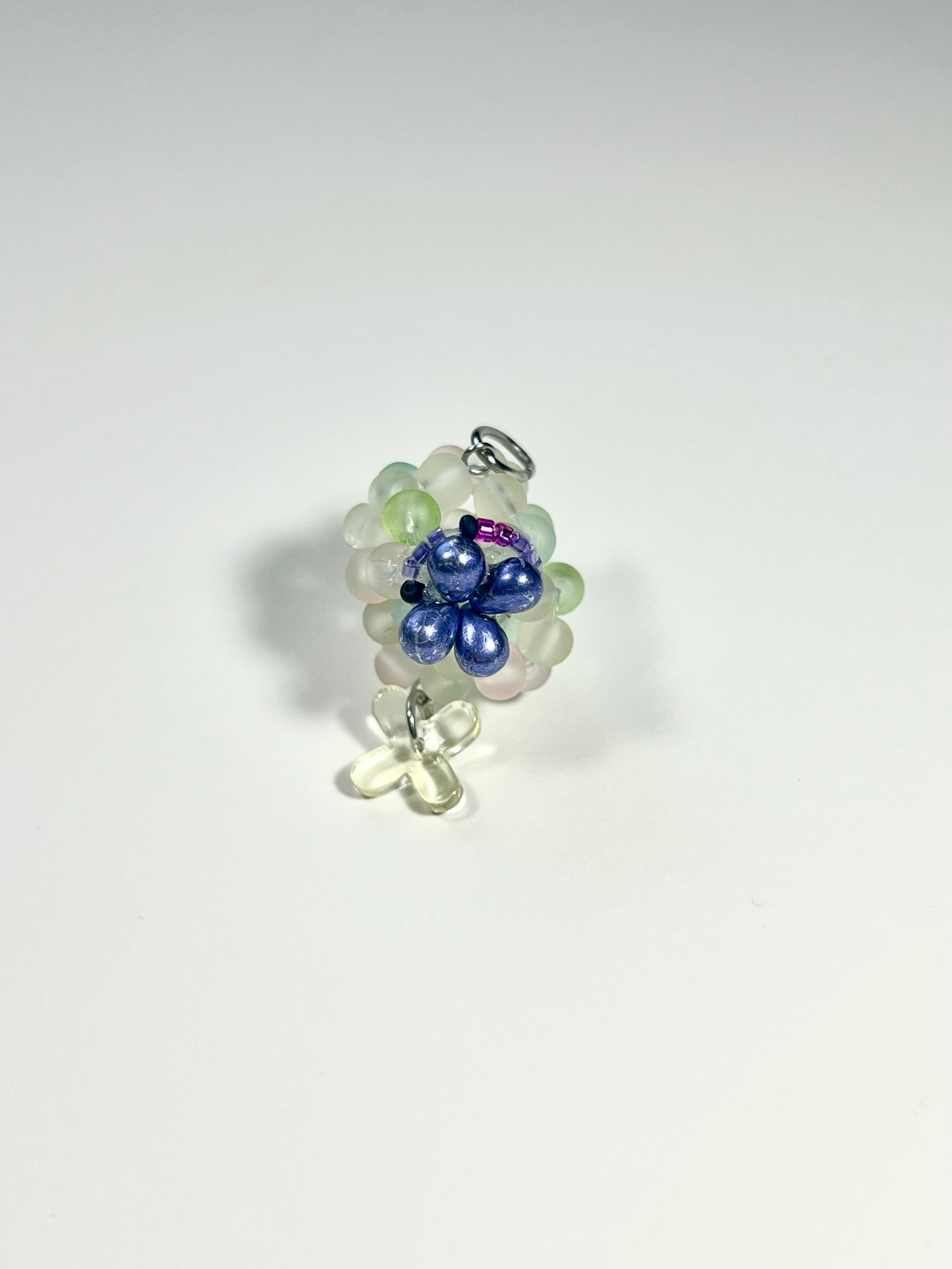 1” glass beaded single locket charm. (more than one available to buy). Keep a tiny keepsake in this locket: a note, tiny photo, a bead, a crystal, a marble, a rock, a dried flower, a few pills, an earring, lock of hair, cat claw, a tiny trinket, or anything special you can fit🩵 stainless steel hardware, monofilament. Email gem.vving@gmail.com with your hardware choice, see photo for options