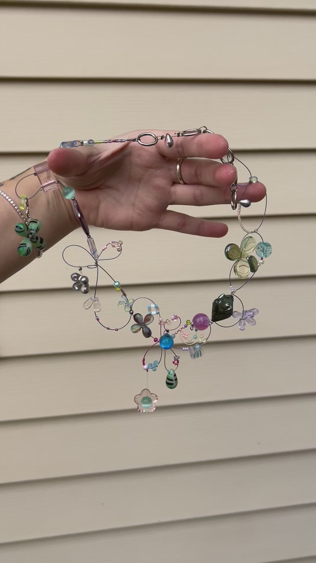 Glass beads, stainless steel hardware, thread