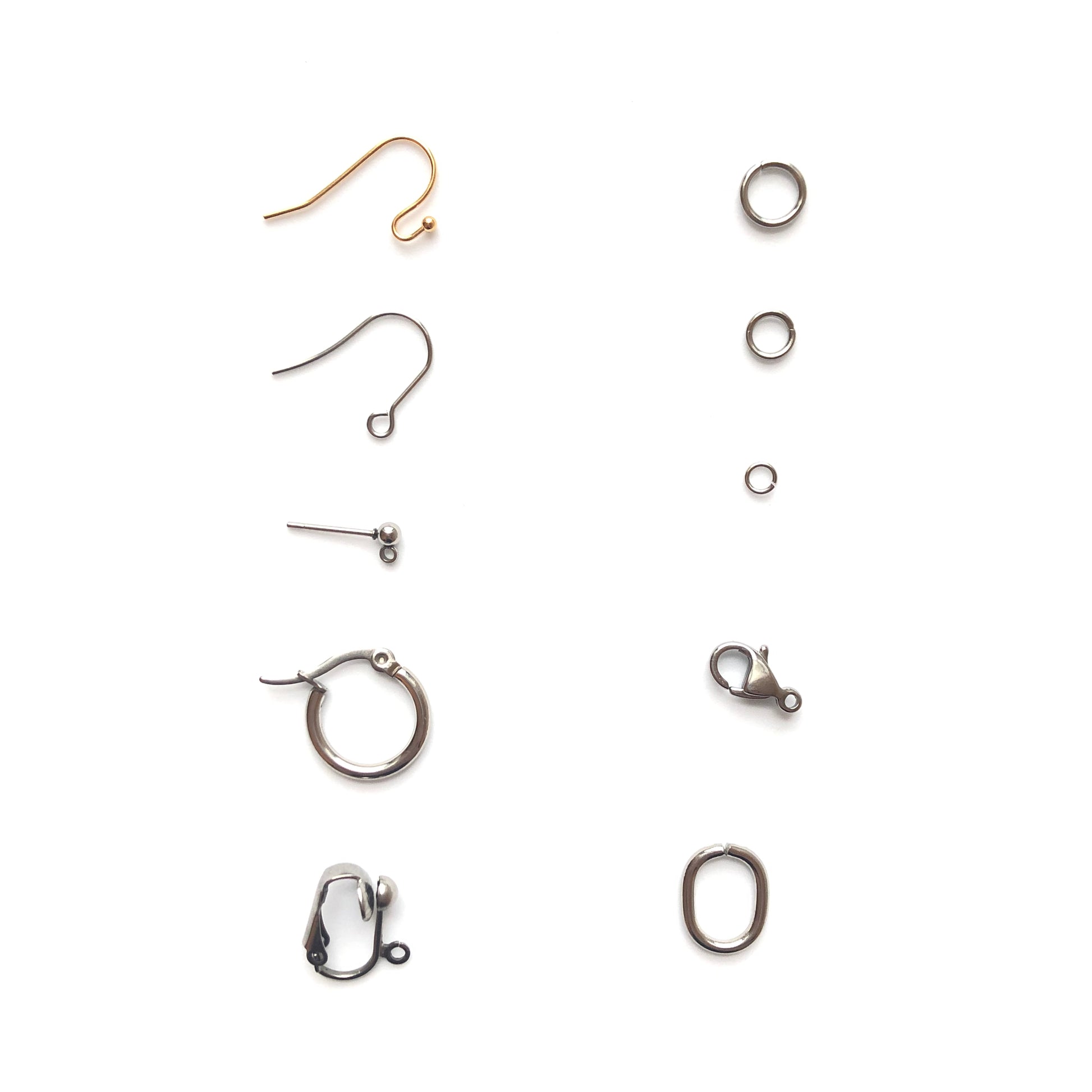 gold earring hook, earring hook, earring stud, hoop earring, clip-on earring, 8mm O-ring, 6mm O-ring, 4mm O-ring, lobster clasp, or oval chunky ring
